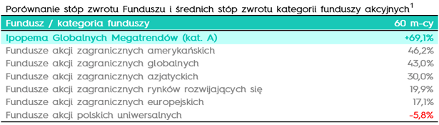 Fundusz Ipopema Globalnych Megatrendów SFIO zarobił blisko 70% dla swoich inwestorów w ciągu ostatnich 5 lat