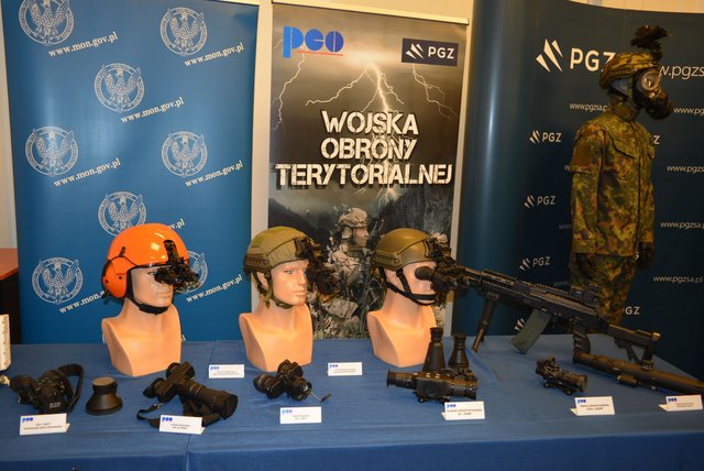 Na spotkanie przygotowano wystawę z prezentacją wyrobów poszczególnych spółek, które będą realizować dla MON zamówienia związane z wyposażeniem i uzbrojeniem WOT. Gospodarz wczorajszego wydarzenia z udziałem ministra Macierewicza firma PCO S.A., jeden z dostawców sprzętu dla nowej formacji wojskowej, pokazała między innymi monokular noktowizyjny MU-3M “KOLIBER” oraz celownik termowizyjny SCT “RUBIN”.