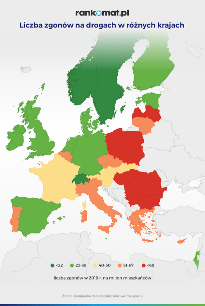 W latach 2016-2019 na polskich drogach średnio śmierć poniosło 12 osób na miliard przejechanych kilometrów. To najwyższy wskaźnik zgonów w Europie. W Norwegii po przebyciu tej samej odległości dochodziło jedynie do dwóch wypadków śmiertelnych.